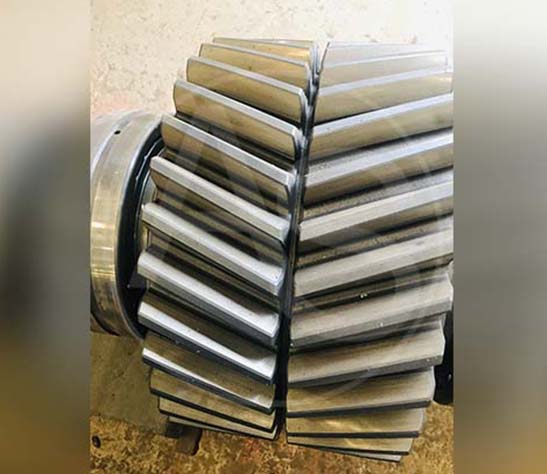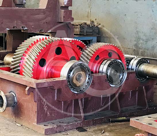 The Gears & Pinions are forged 18CrNiMob-7/case Carburized steel hardened to 60±2 HRC, shrunk fitted on En-9 forged steel shafts. The gears and pinions will conform to DIN 3 / 4 Standard. Single helical teeth hardened and Profile Ground on CNC Gear grinder machines to give high contact ratio and low noise or vibrations.